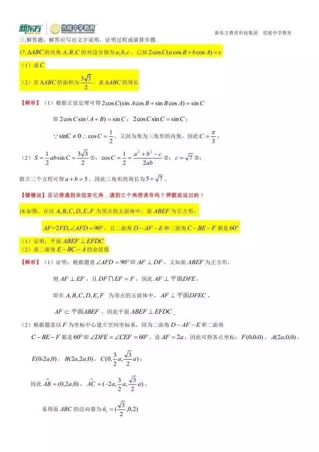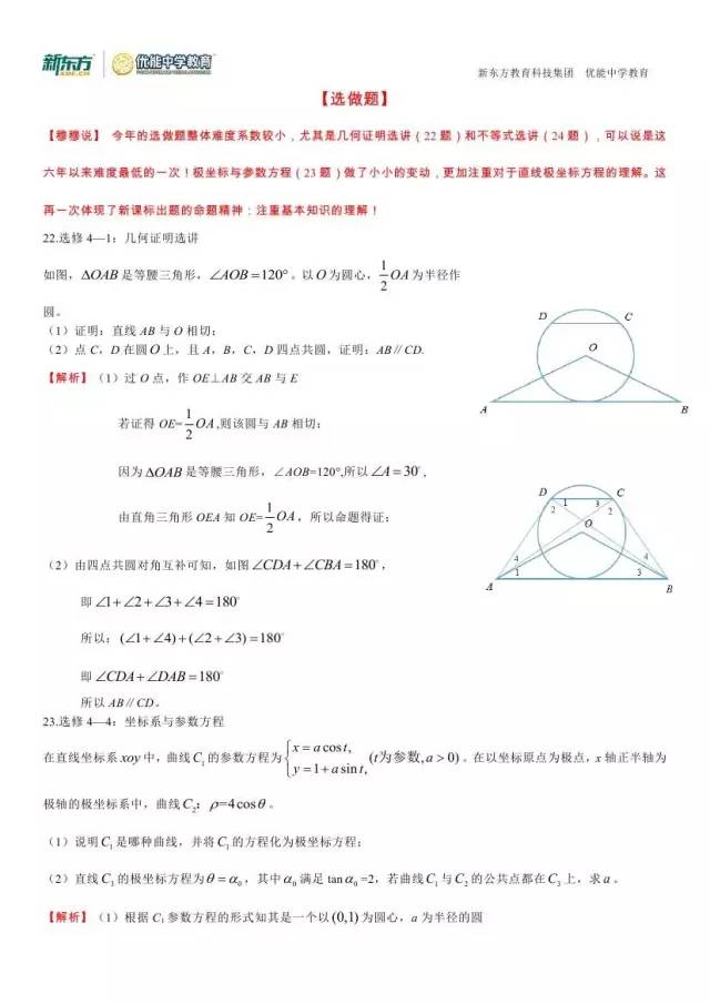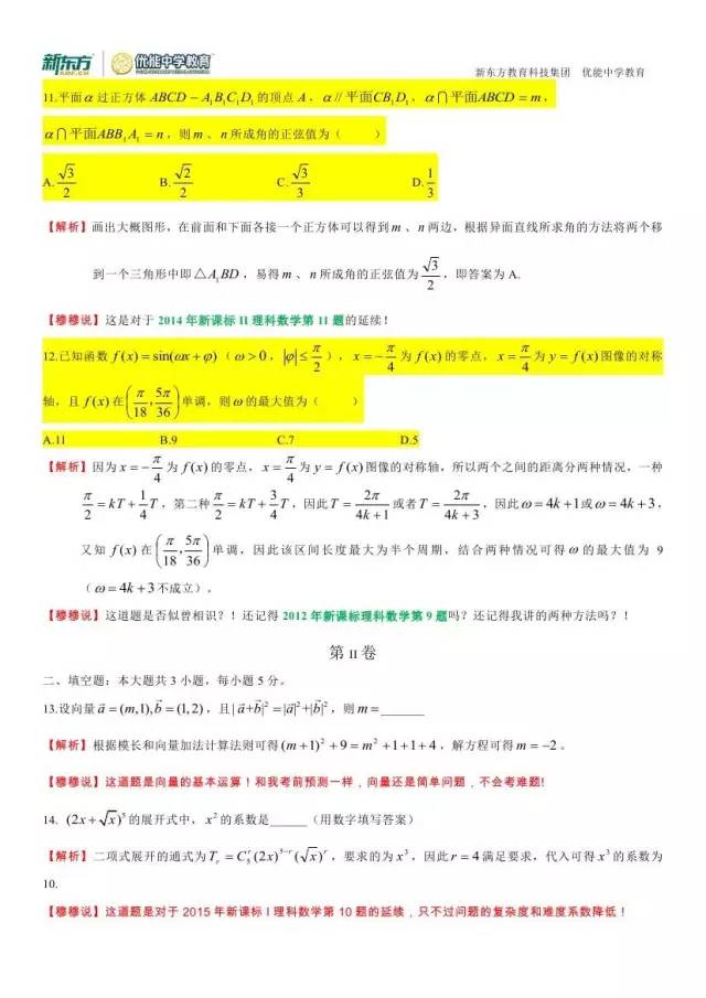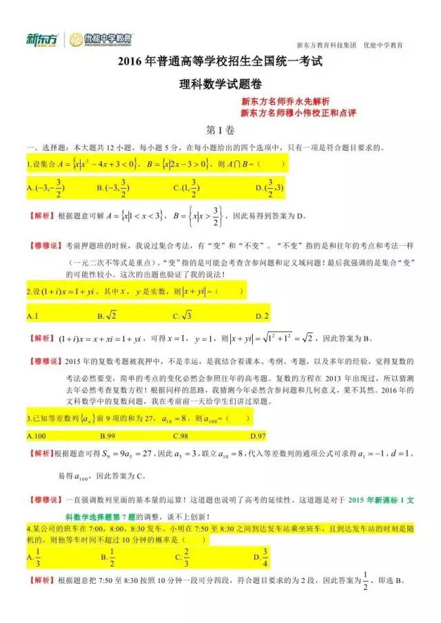 郑州新东方高考系列:2016高考理科数学试卷答案及解析!