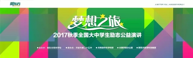 自2005年开始,新东方“梦想之旅”迄今已举办12届,行程 17.2万公里,足迹遍及全国 280座城市,2017年新东方“梦想之旅”又再次启程。希望通过新东方讲师们的演讲,培养新时代青年独立思考、全球视野、终身学习的意识,让全国的大中学生可以看到一些不一样的人生,发现不一样的自己,从而实现更高更远的人生目标。