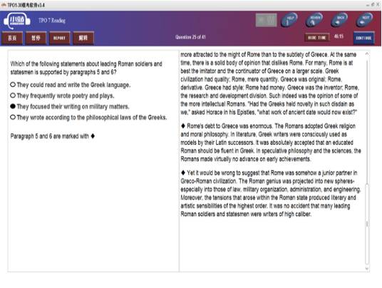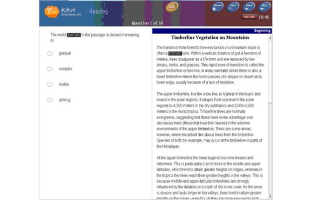唯一不同的是文章和题目的左右是反着的。并没有什么新意!界面上是换汤不换药,本质上有不同:托福考试的考生是没办法再文章上做标注和定位,雅思阅读则不然,可以标注定位可以做note: