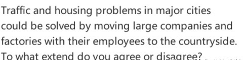 第一,有烤鸭会提出造成Traffic and housing problems的原因,如fast population growth, inadequate housing supply等等,表示城市中的确存在很多问题,以此来表达Agree题目论点的观点。丝毫没有提到Moving large companies and factories with their employees to the countryside的好处或者作用,这是典型的偏题。
