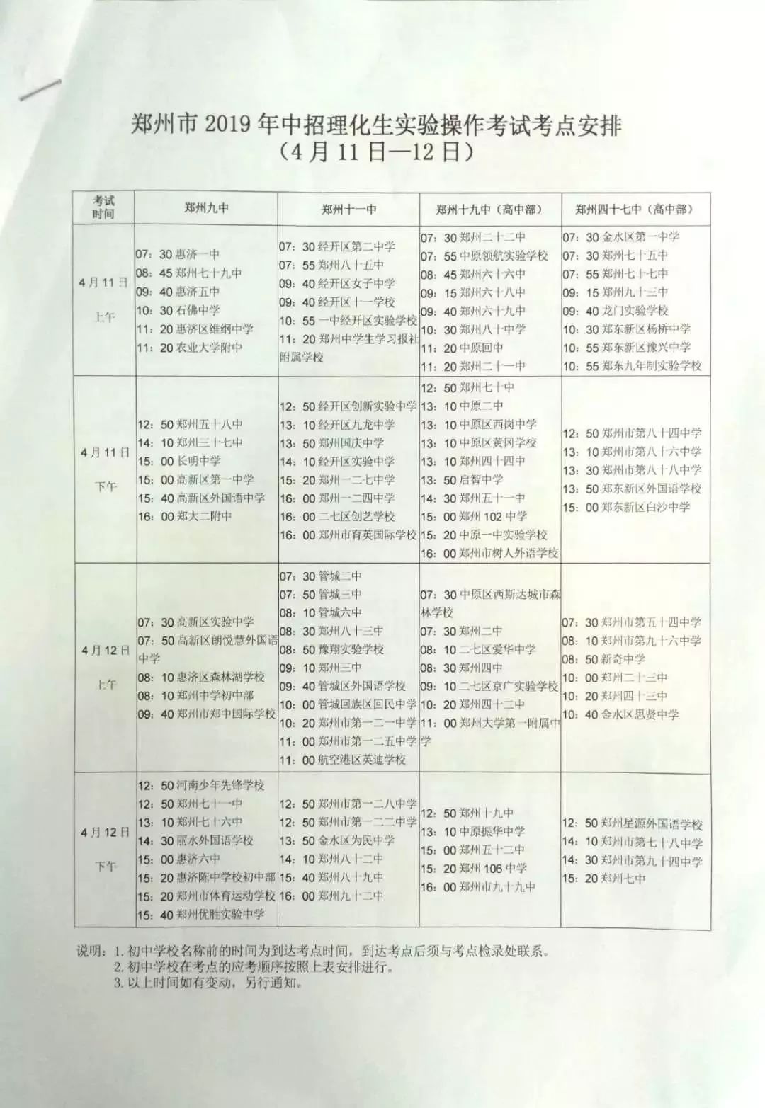 速看!2019郑州市中招理化生实验考试时间及考场安排出炉!