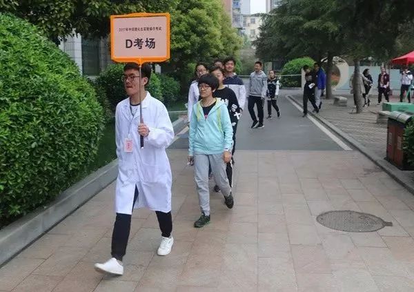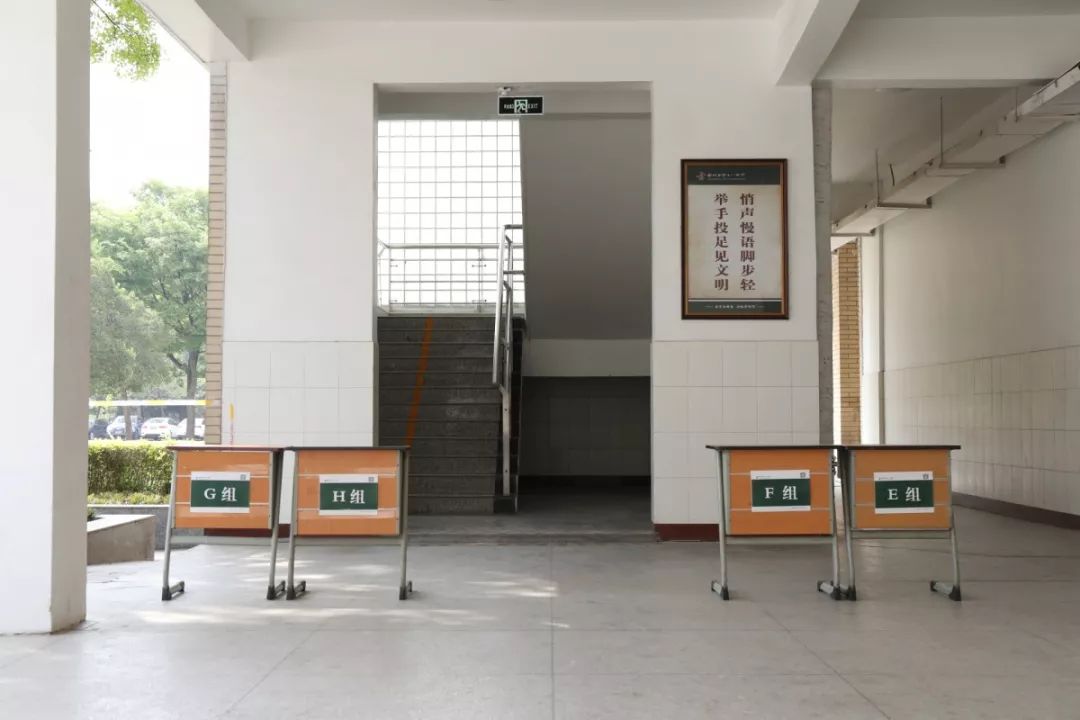 考生在候检区集合完毕后,学校有专人引领考生进入检录区抽签,检录区在学校致中堂礼堂西边空地。
