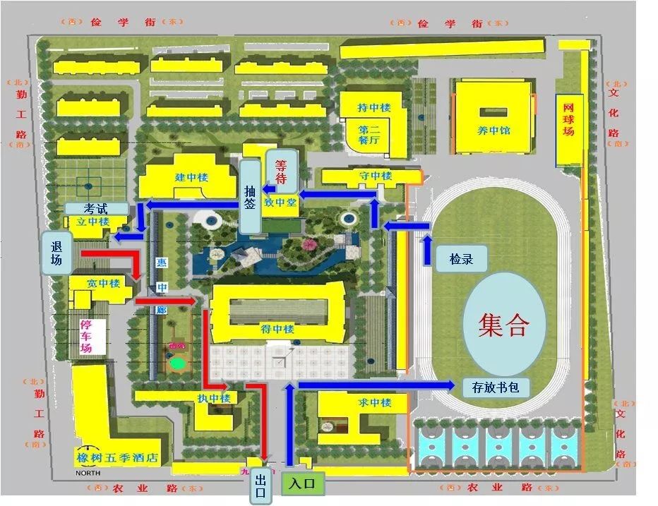 郑州市中招理化生实验操作考试郑州市第九中学考点,所有参加实验考试的考生均从学校大门(农业路与文化路交叉口西北角)进入,送考教师的机动车从学校大门进入停车场。