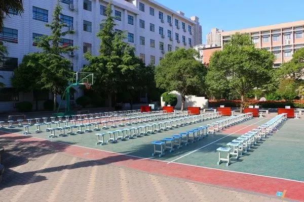 考生在候检区集合完毕后,学校有专人引领考生进入检录区抽签,检录区在前广场西侧篮球场,即囊萤园球场。