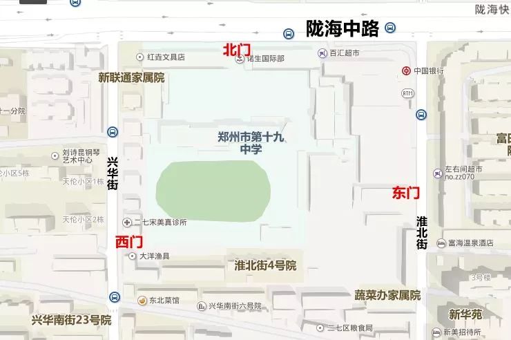 此次郑州市中招理化生实验操作考试郑州市第十九中学考点设在陇海校区,陇海校区目前有北门、东门、西门三个大门,所有参加实验考试的考生均从学校北门进入,送考教师的机动车不能进入考点,可以选择停放在学校北门东西两侧的大型停车场内。由于考试期间,学校三个年级教育教学工作正常进行,所以考生家长谢绝入内。考生凭准考证、送考教师凭介绍信进入考点。