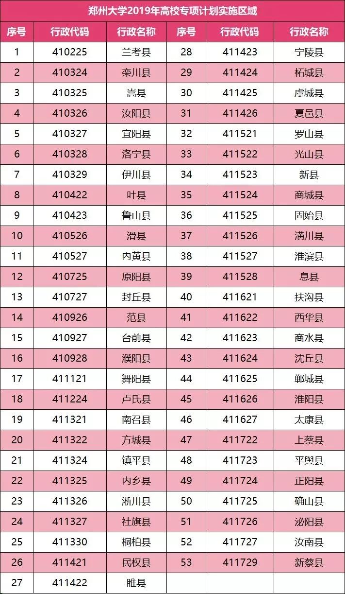 为进一步拓宽农村学生就读重点高校升学渠道,根据《教育部办公厅关于做好2019年重点高校招收农村和贫困地区学生工作的通知》要求,2019年我校继续实施高校专项计划,主要招收河南省边远、贫困、民族等地区县(含县级市)以下高中勤奋好学、成绩优良的农村学生。