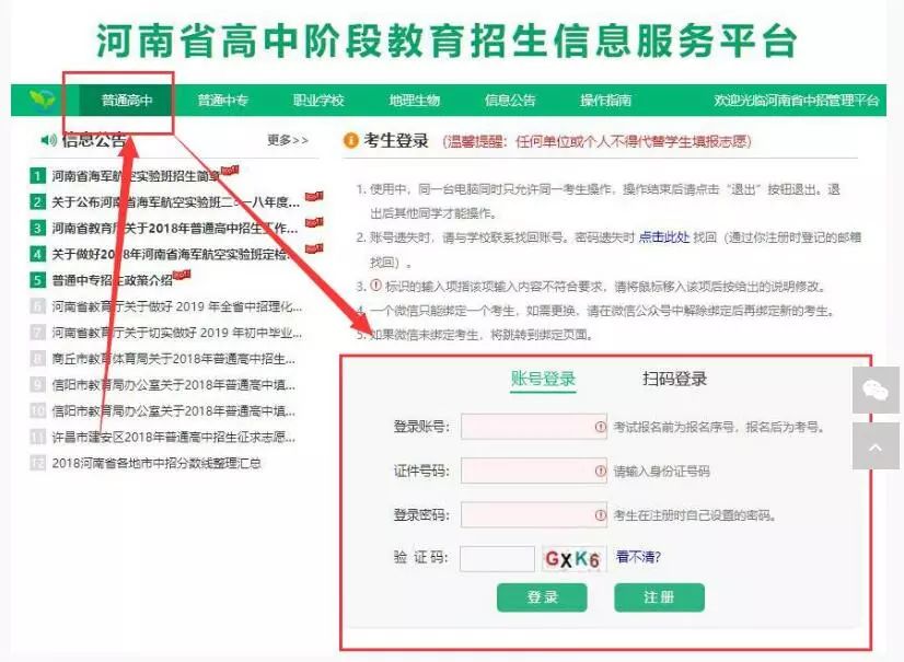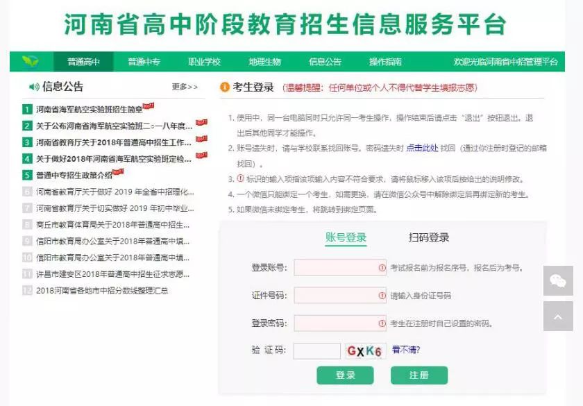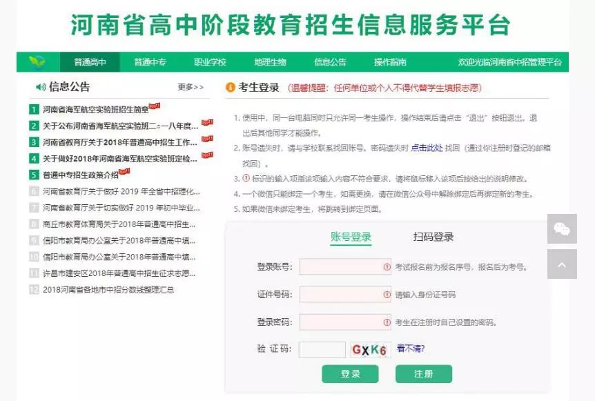 ①登录账号:即考生的报名序号。(中招报名后为中招考号)