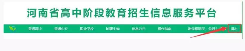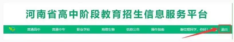 志愿填报完成后,一定要点击网页右上角的“退出”按钮,安全退出系统,以防密码丢失或被篡改。如图所示:
