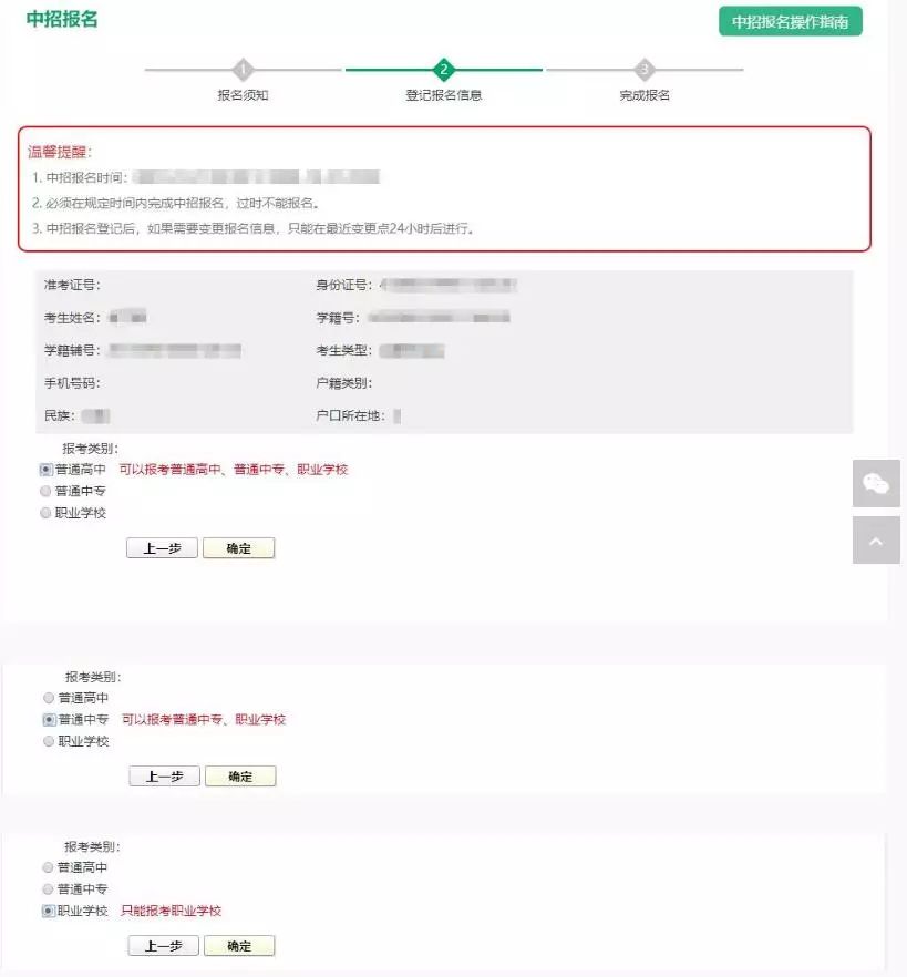 ①报考类别:分为“普通高中、普通中专、职业学校”三种,请考生必正确选择自己的报考类别。