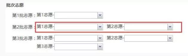 相同批次中如果有两个志愿,两个志愿填报学校不能相同。如下图