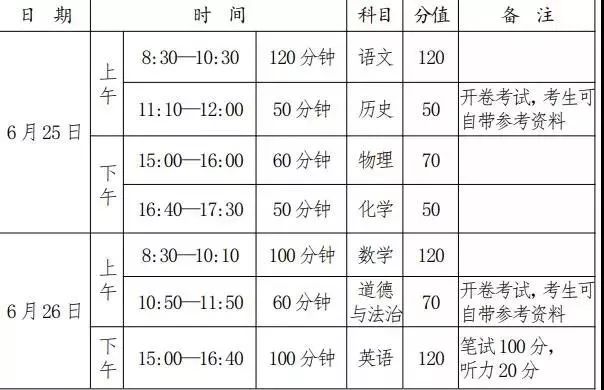 中考时间安排