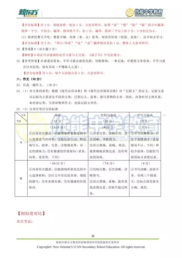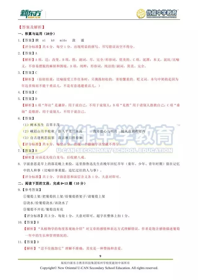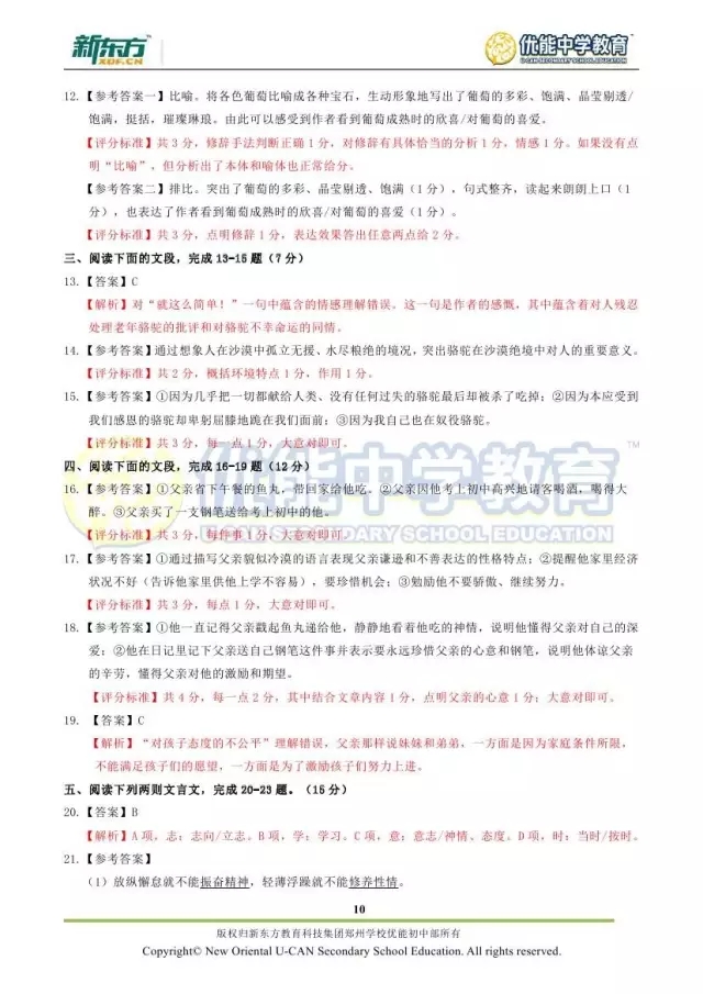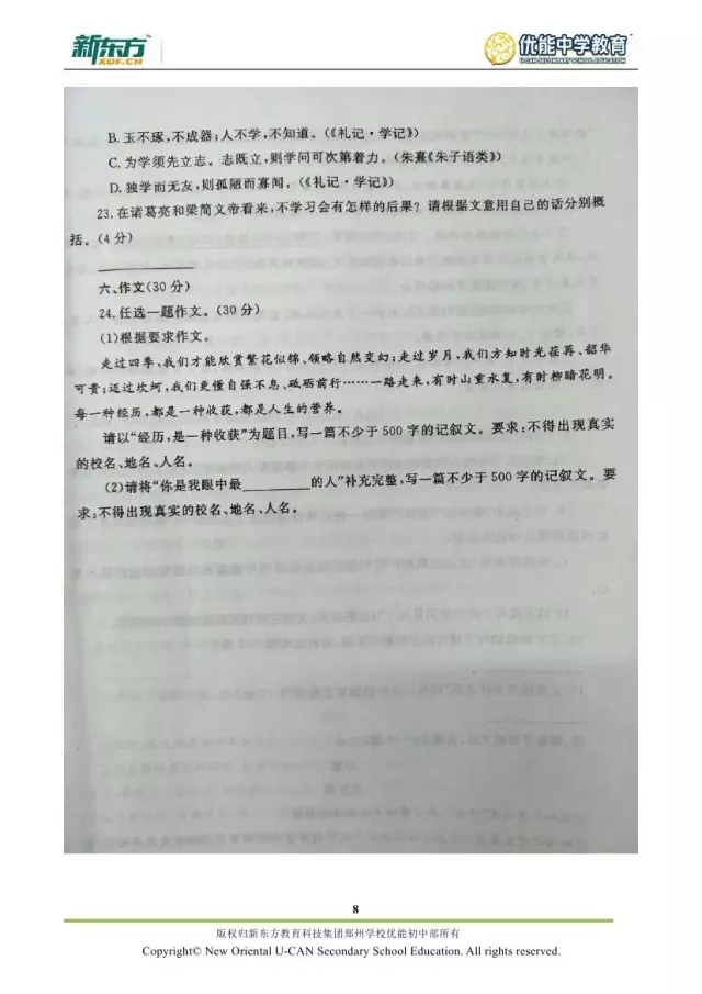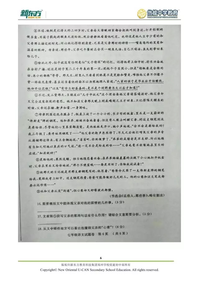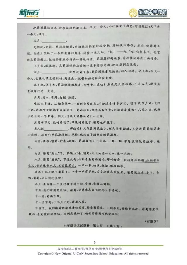 2017郑州七年级语文期末试卷解析来袭【郑州新东方】