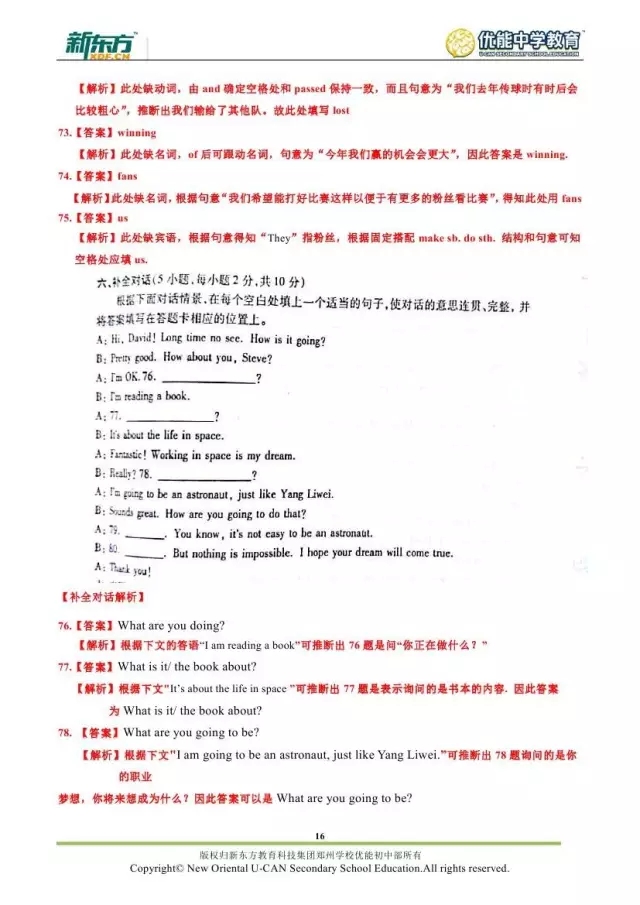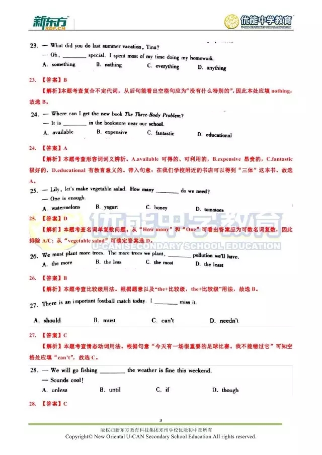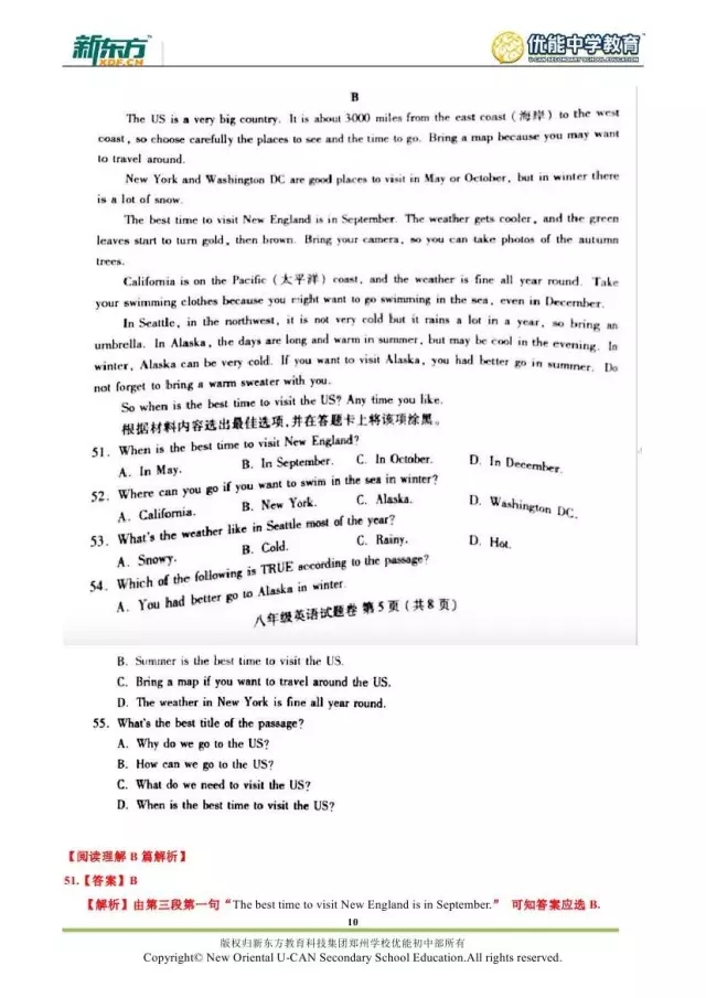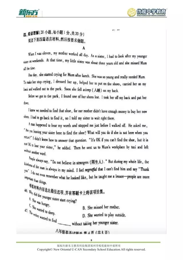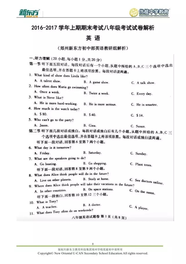 2017郑州八年级英语期末试卷解析来袭【郑州新东方】