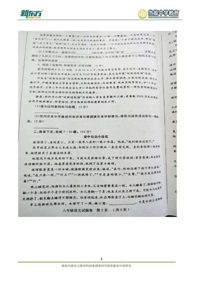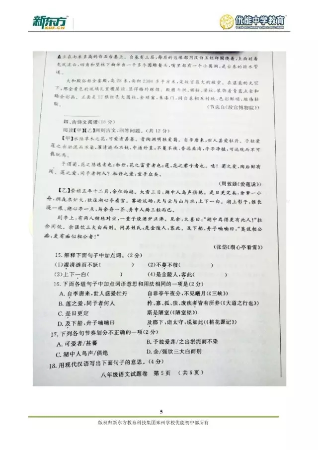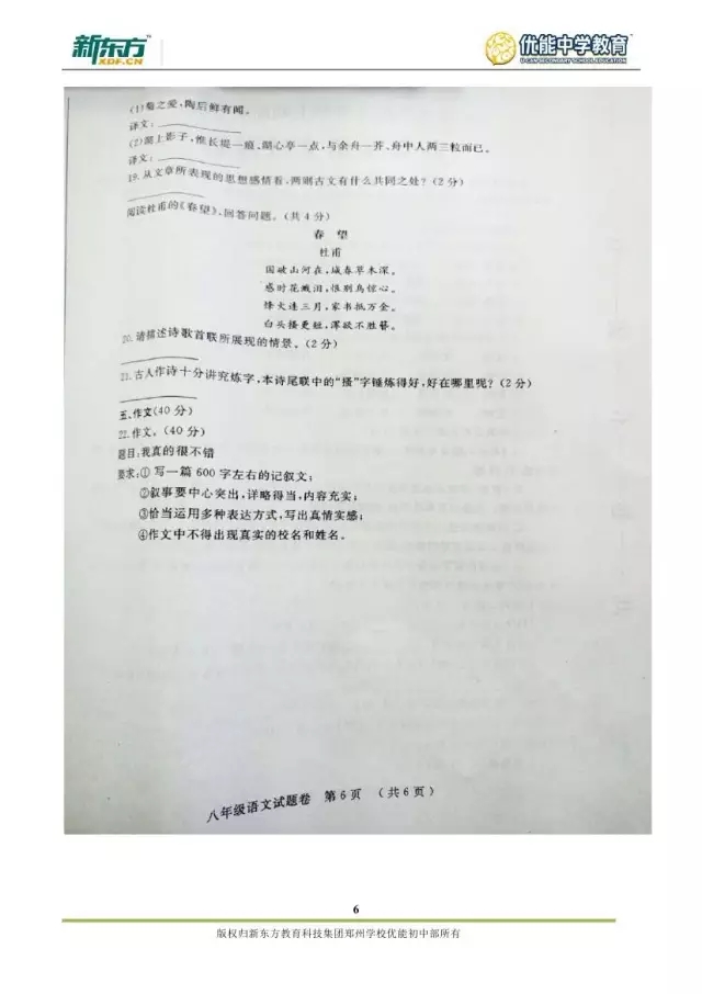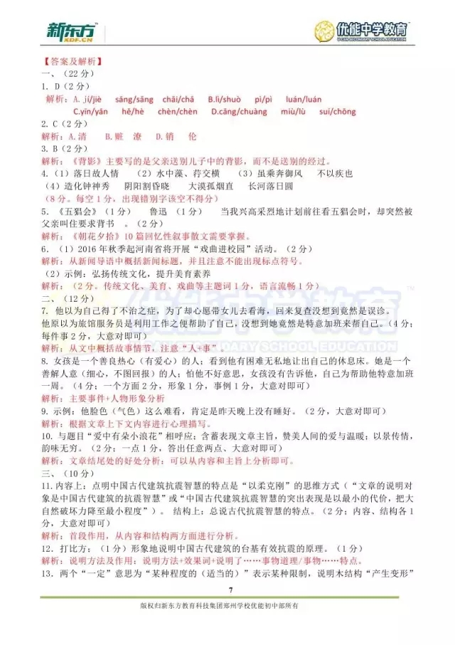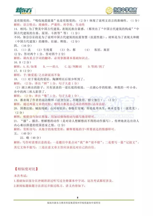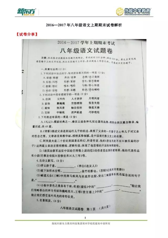 2017郑州八年级语文期末试卷解析来袭【郑州新东方】