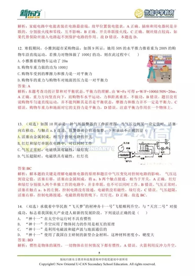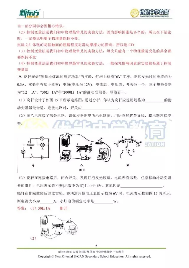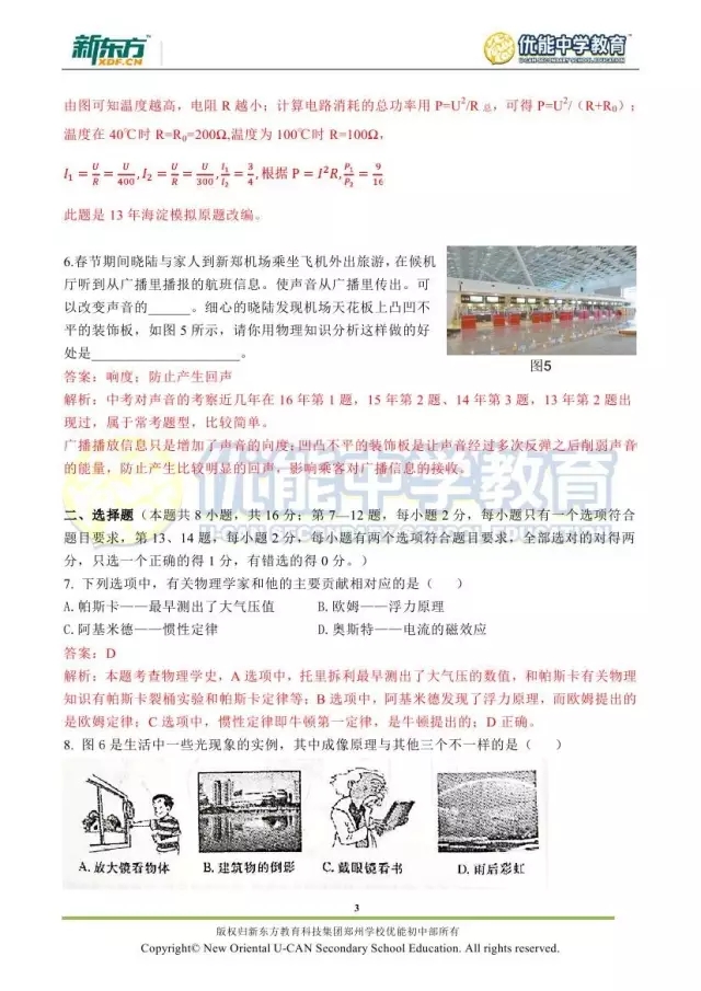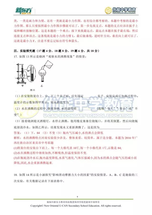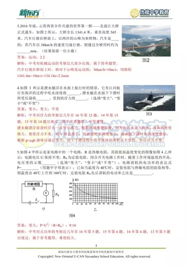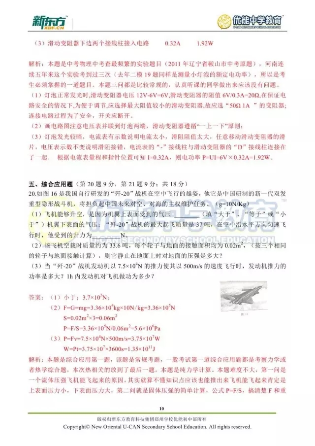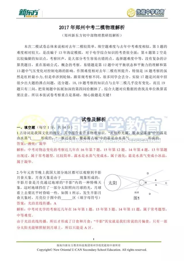2017郑州中考二模物理试卷解析!【郑州新东方】