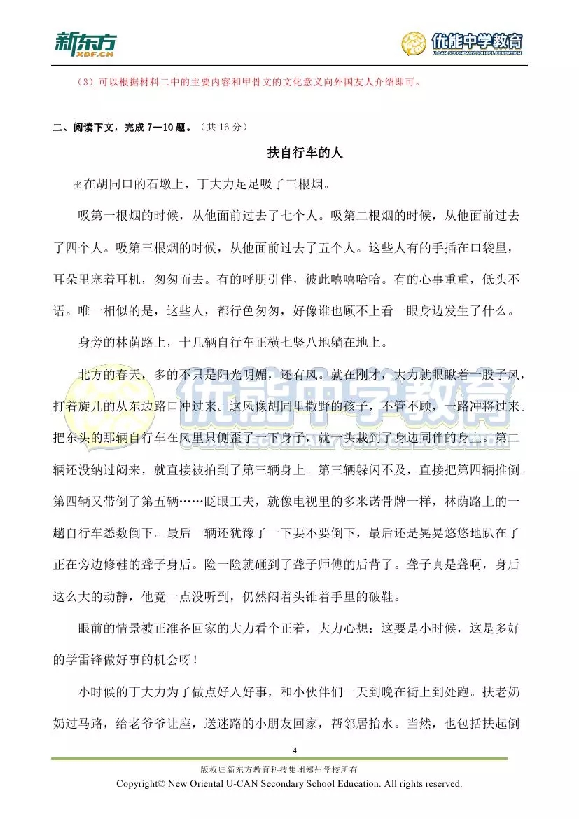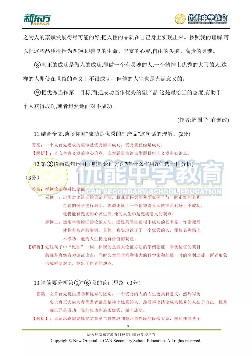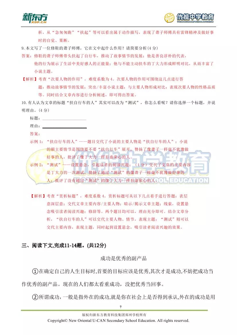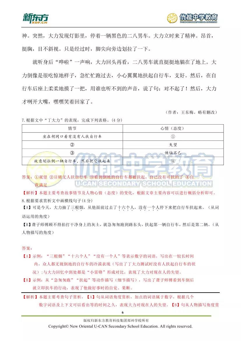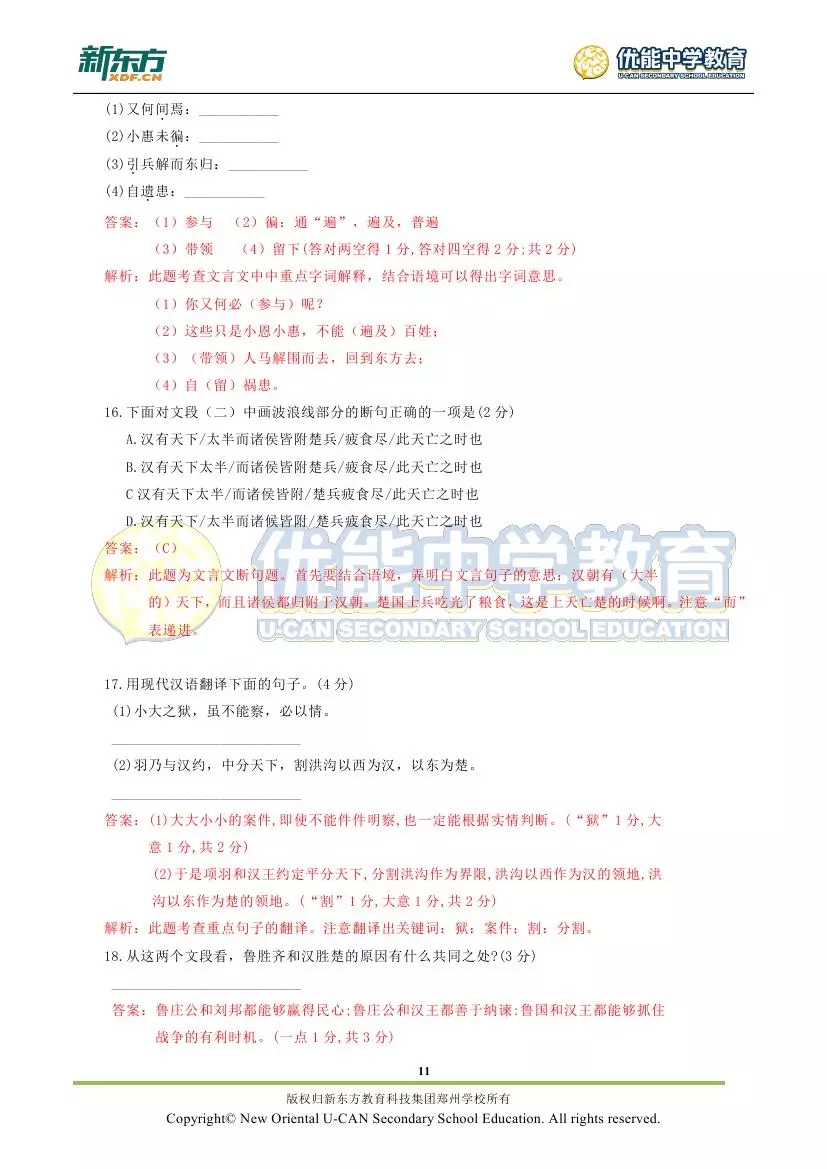 新东方郑州学校首发:2018郑州市九年级语文期末试卷解析!