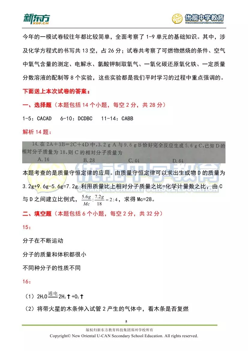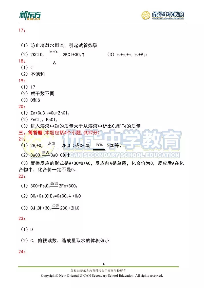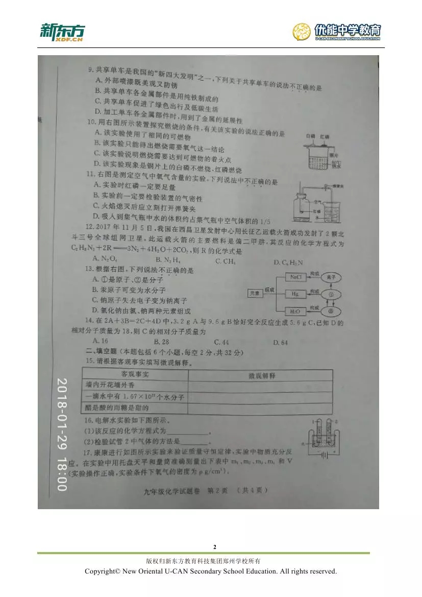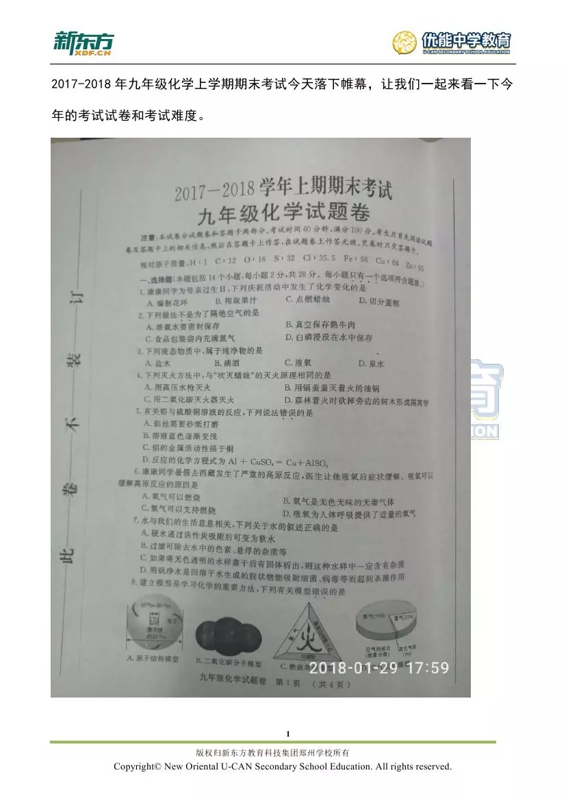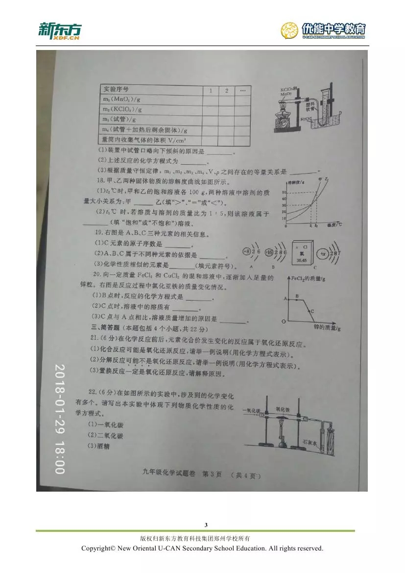新东方郑州学校首发:2018郑州市九年级化学期末试卷解析!