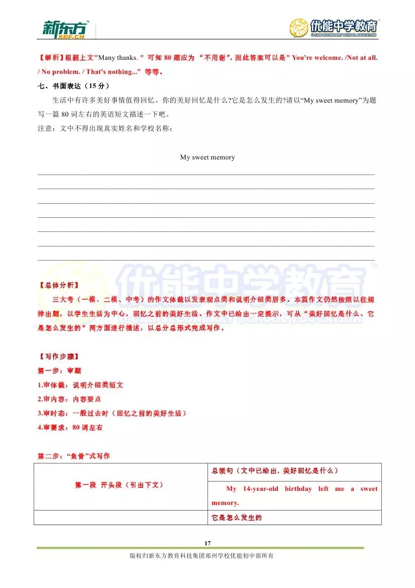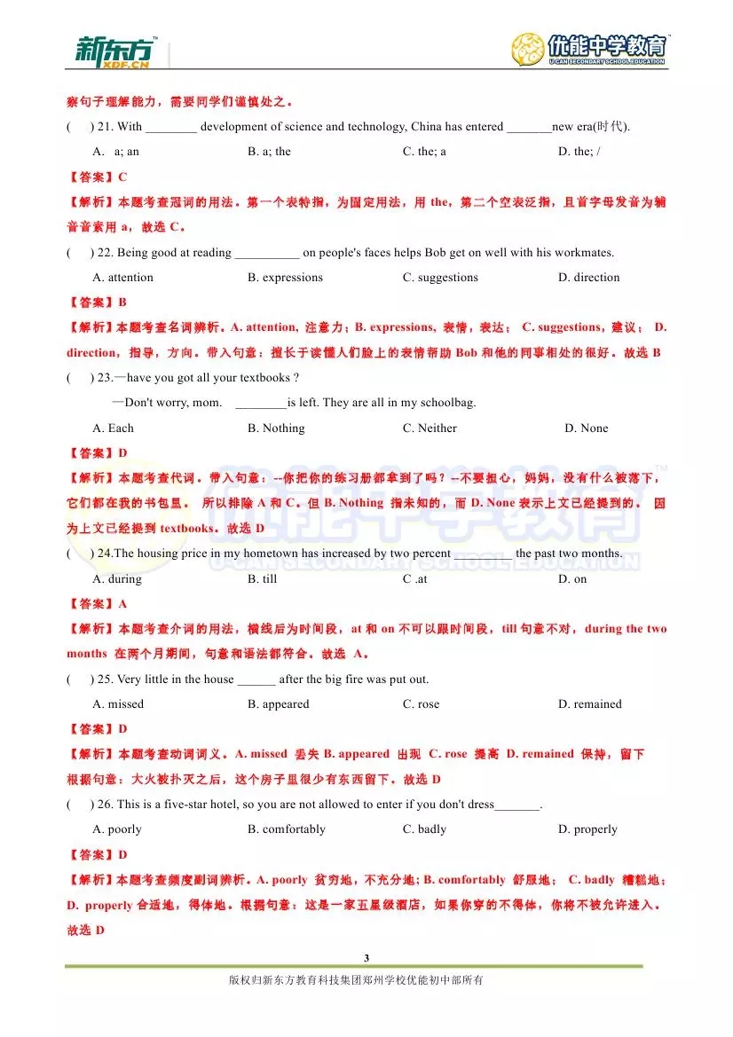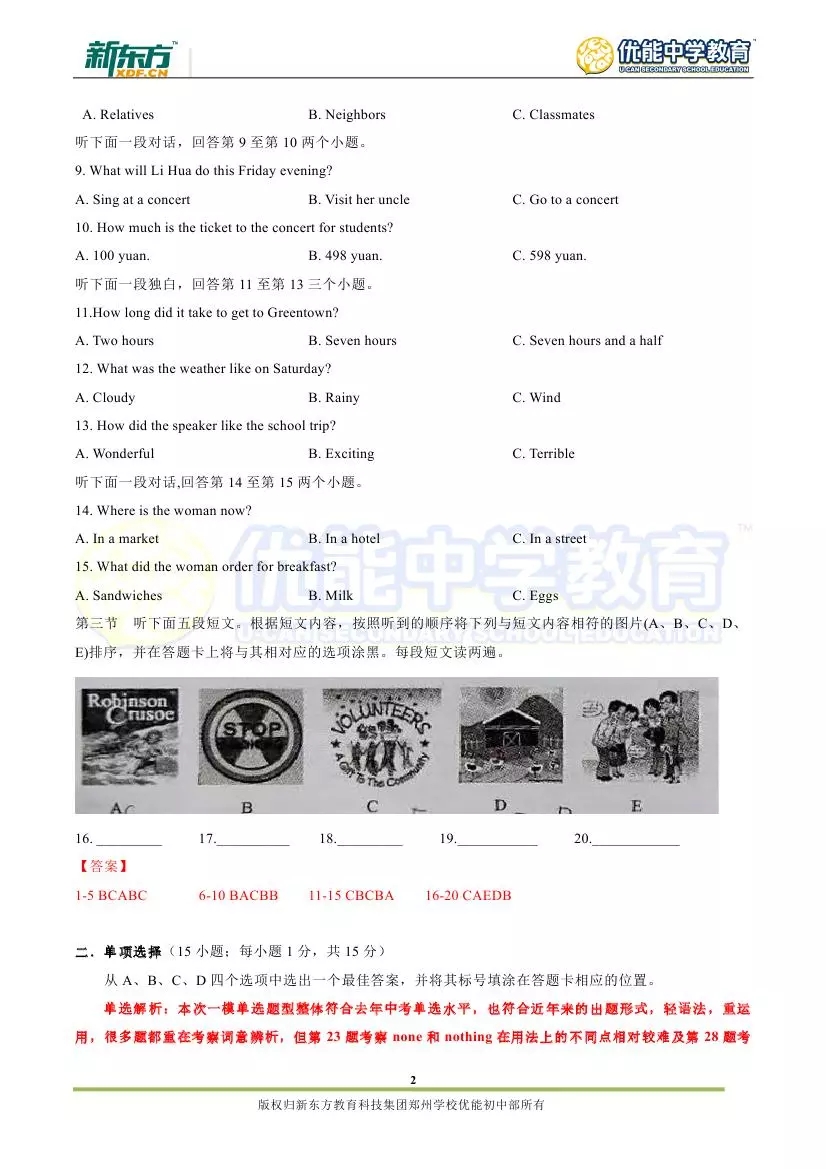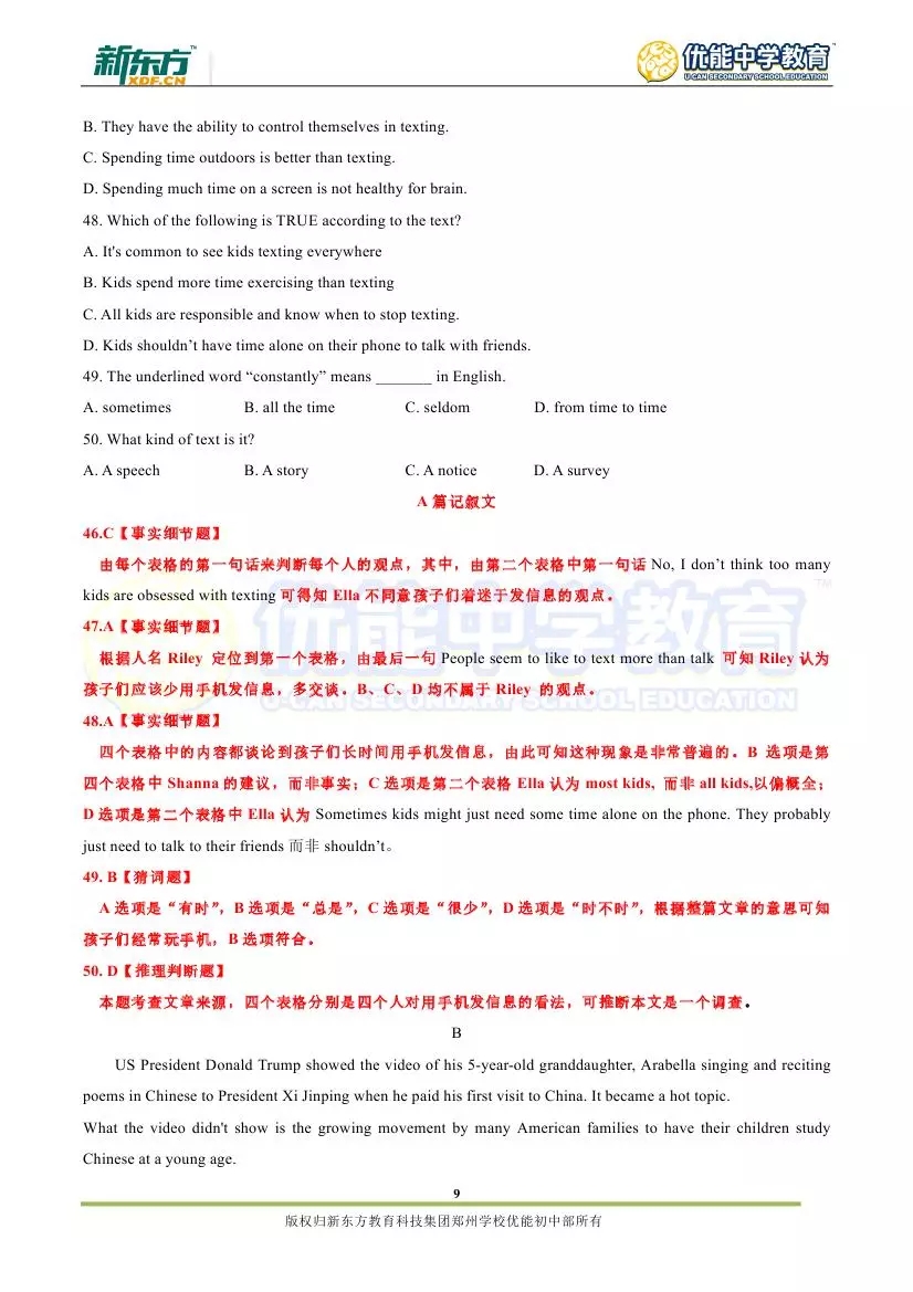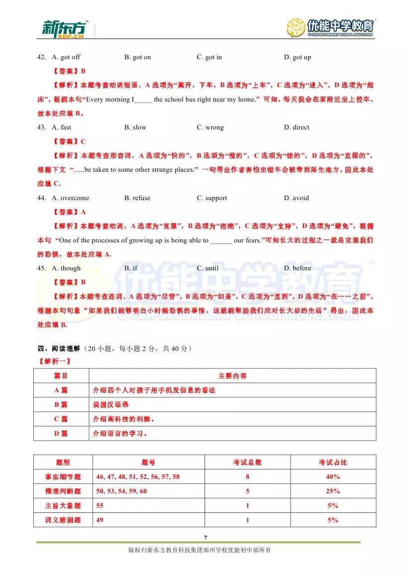 新东方郑州学校首发:2018郑州市九年级英语期末试卷解析!