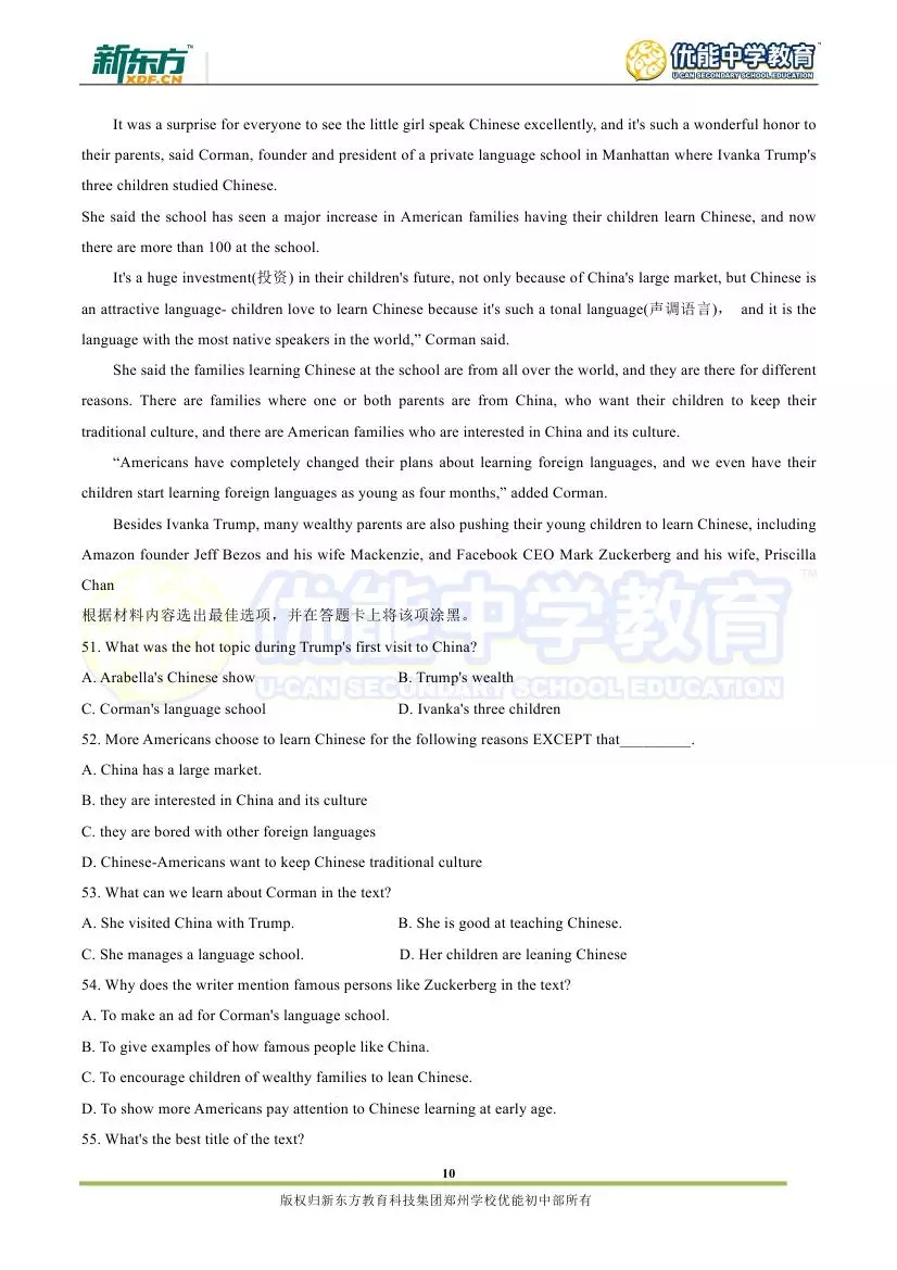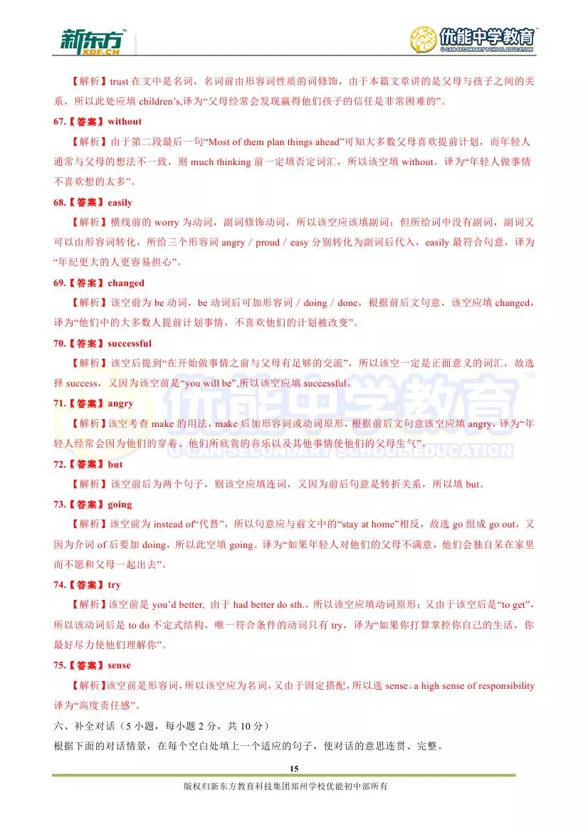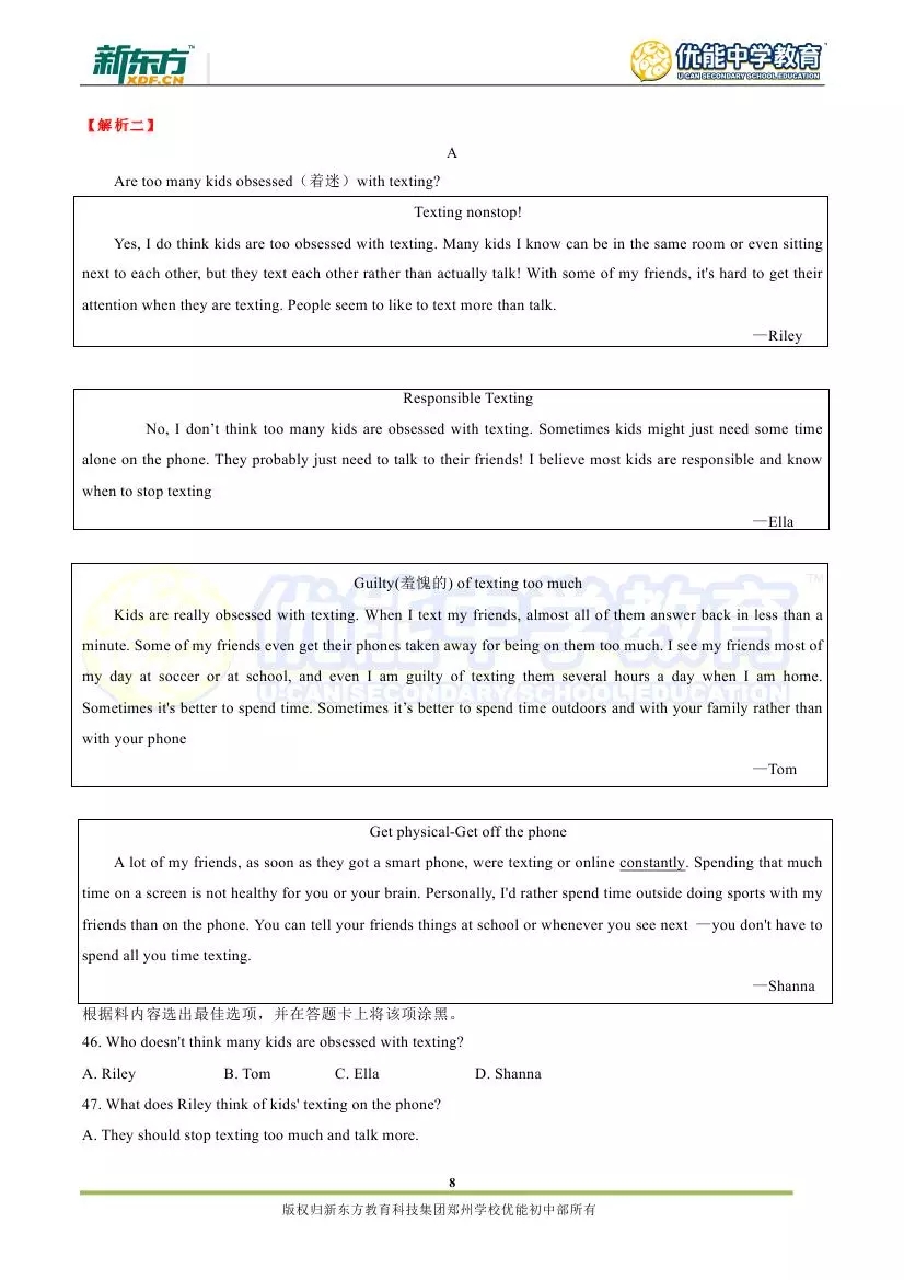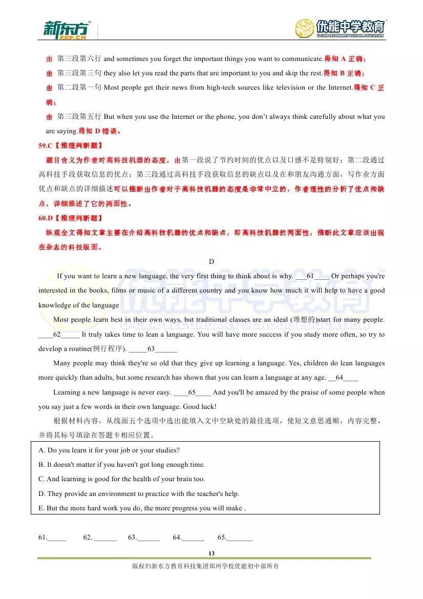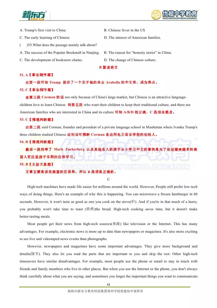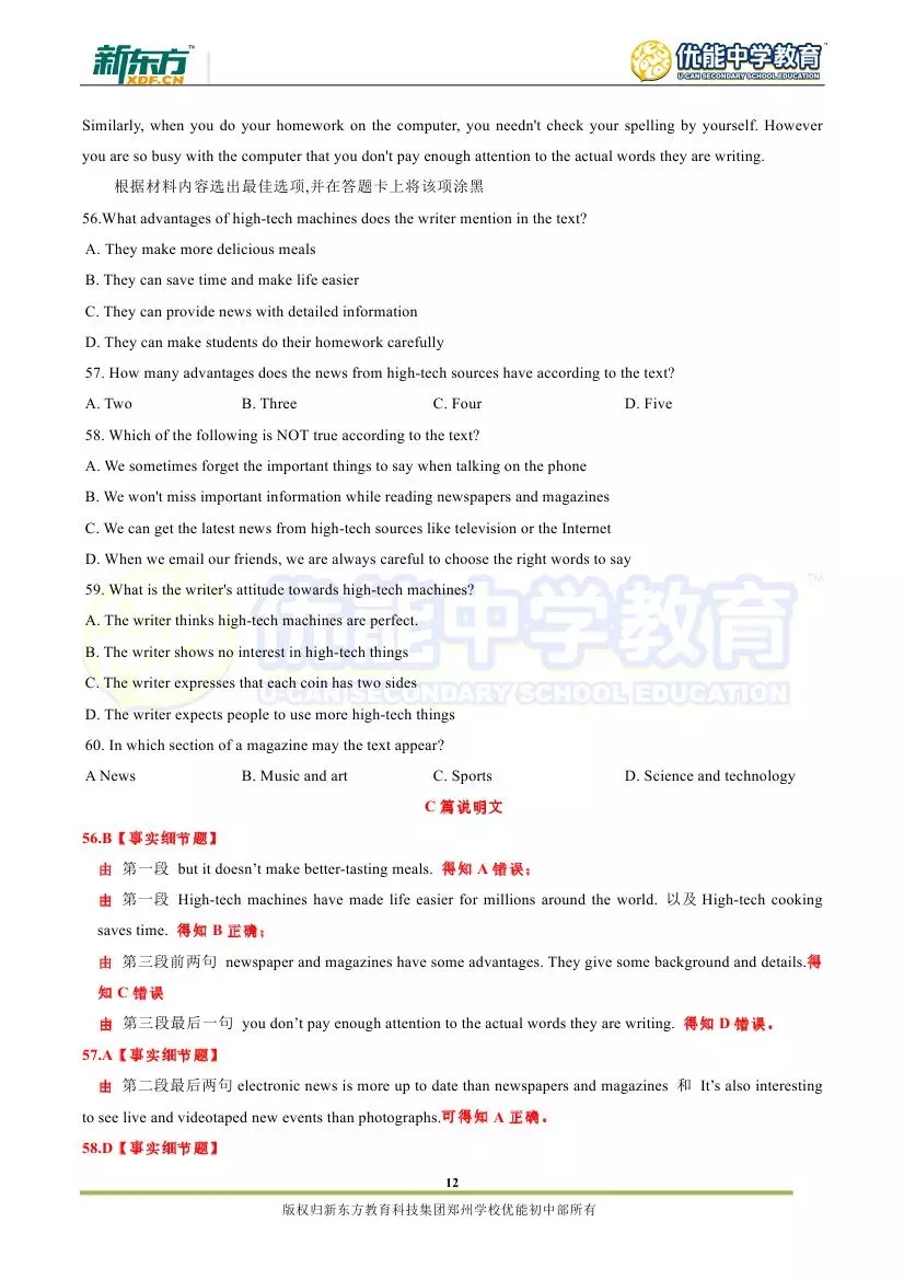 新东方郑州学校首发:2018郑州市九年级英语期末试卷解析!