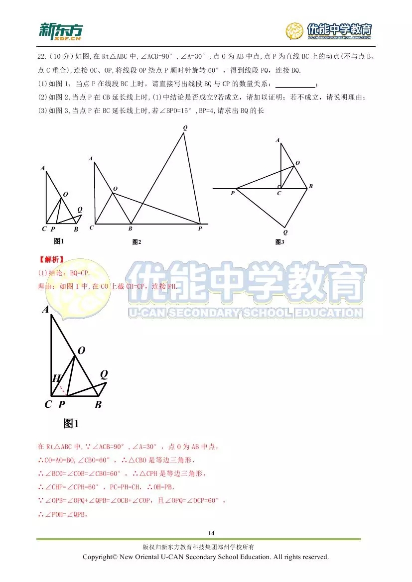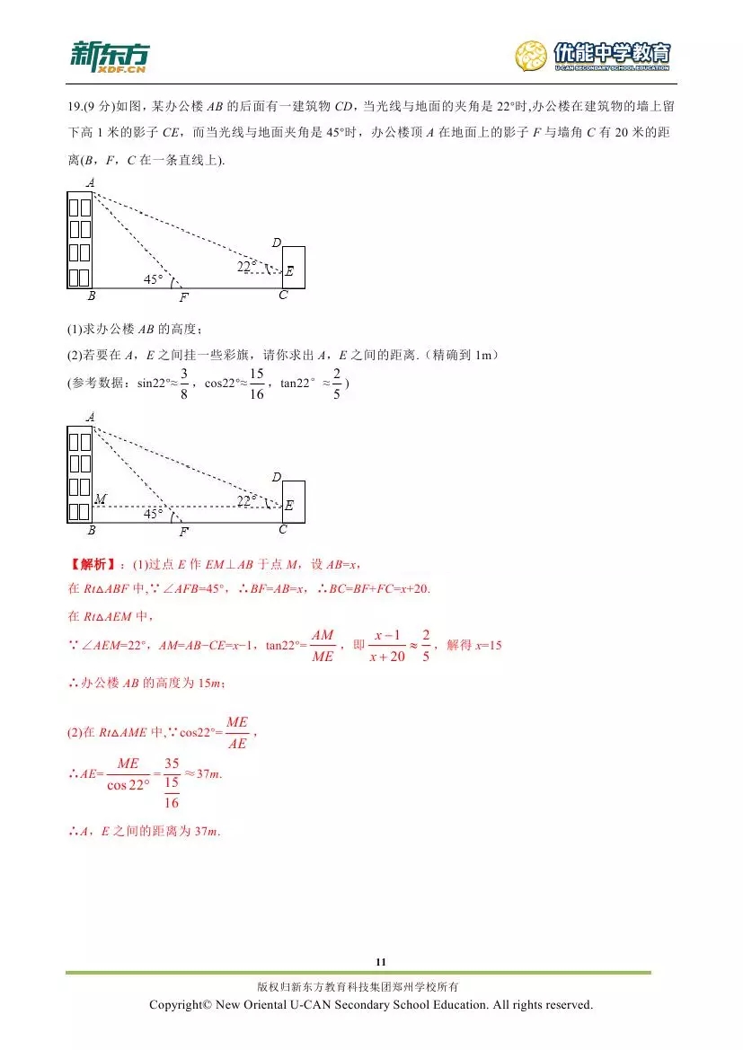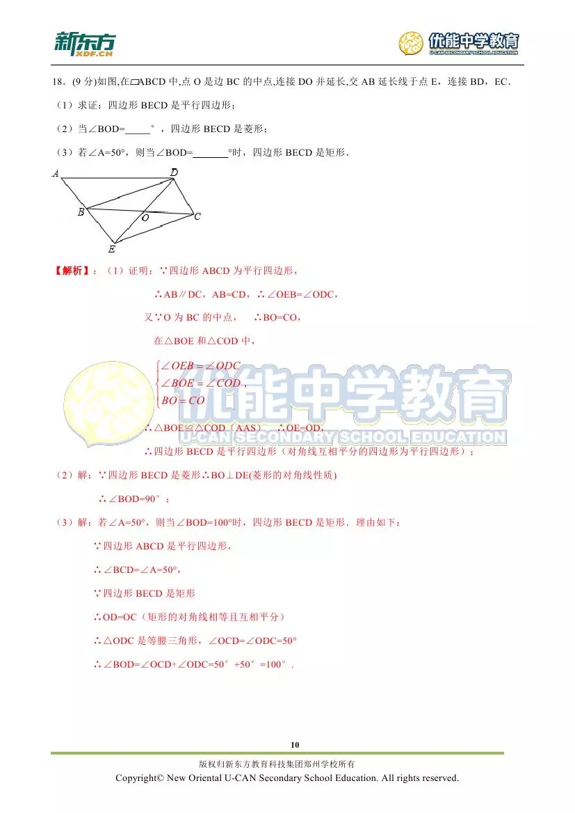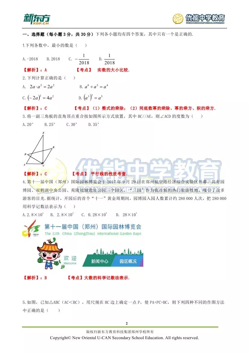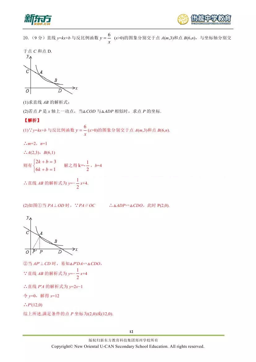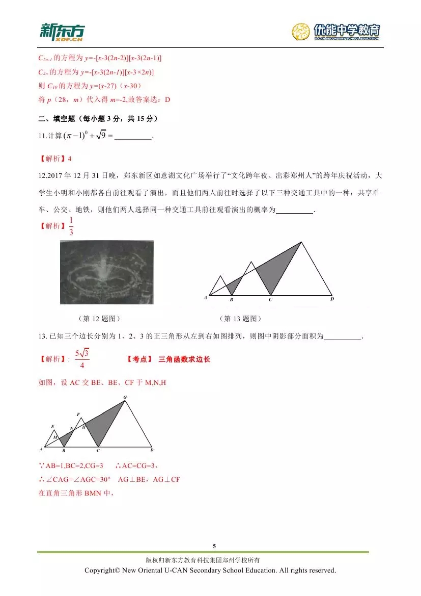新东方郑州学校首发:2018郑州市九年级数学期末试卷解析!
