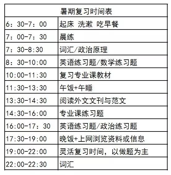 在暑假这段时间里,要对以前所学的内容来一次全面扫描,归纳出自己含糊不清、一知半解的章节,并有针对性地进行巩固强化;提前了解、熟悉中考考纲,通过对考点的梳理来确定自己掌握不扎实的内容,制定针对性学习方案,抓住考点做针对性复习。