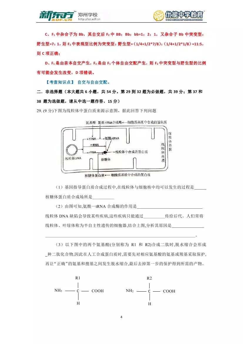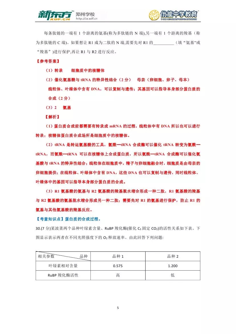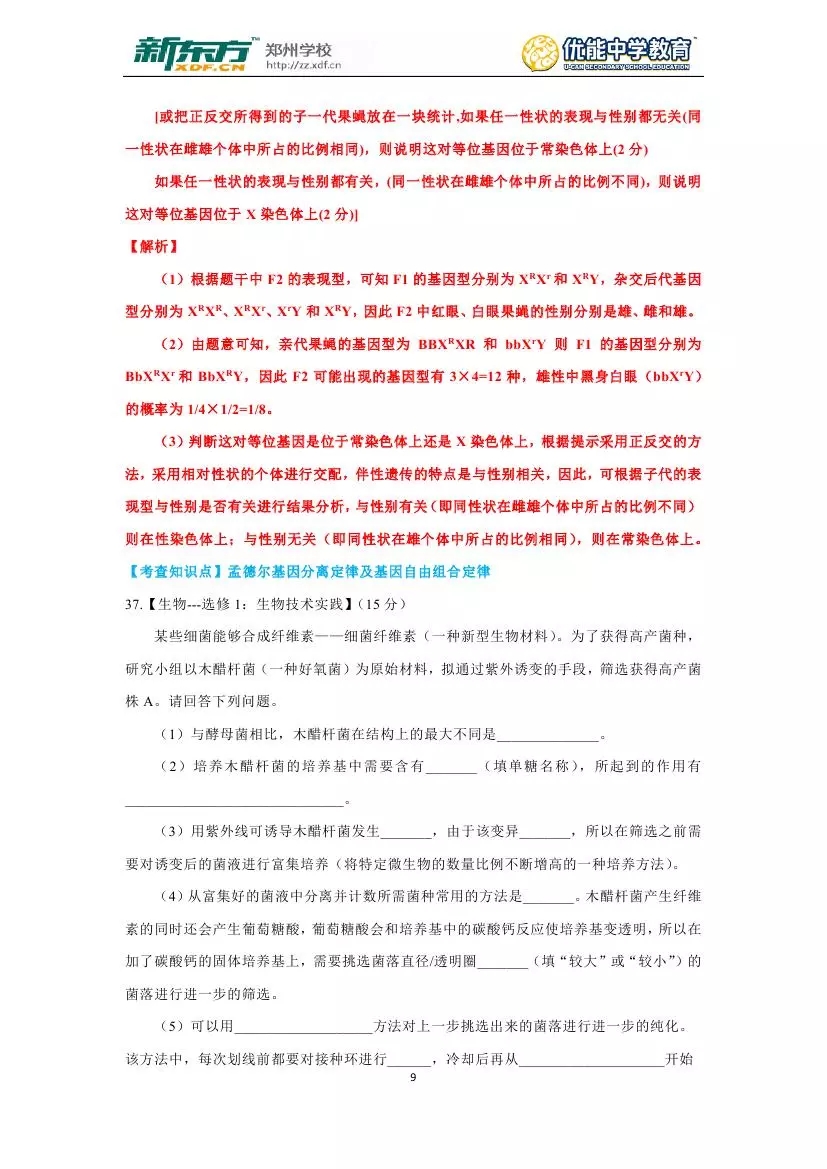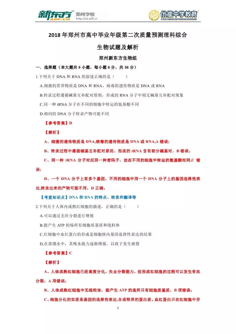 新东方郑州学校首发:2018郑州市高考二模生物试卷解析!