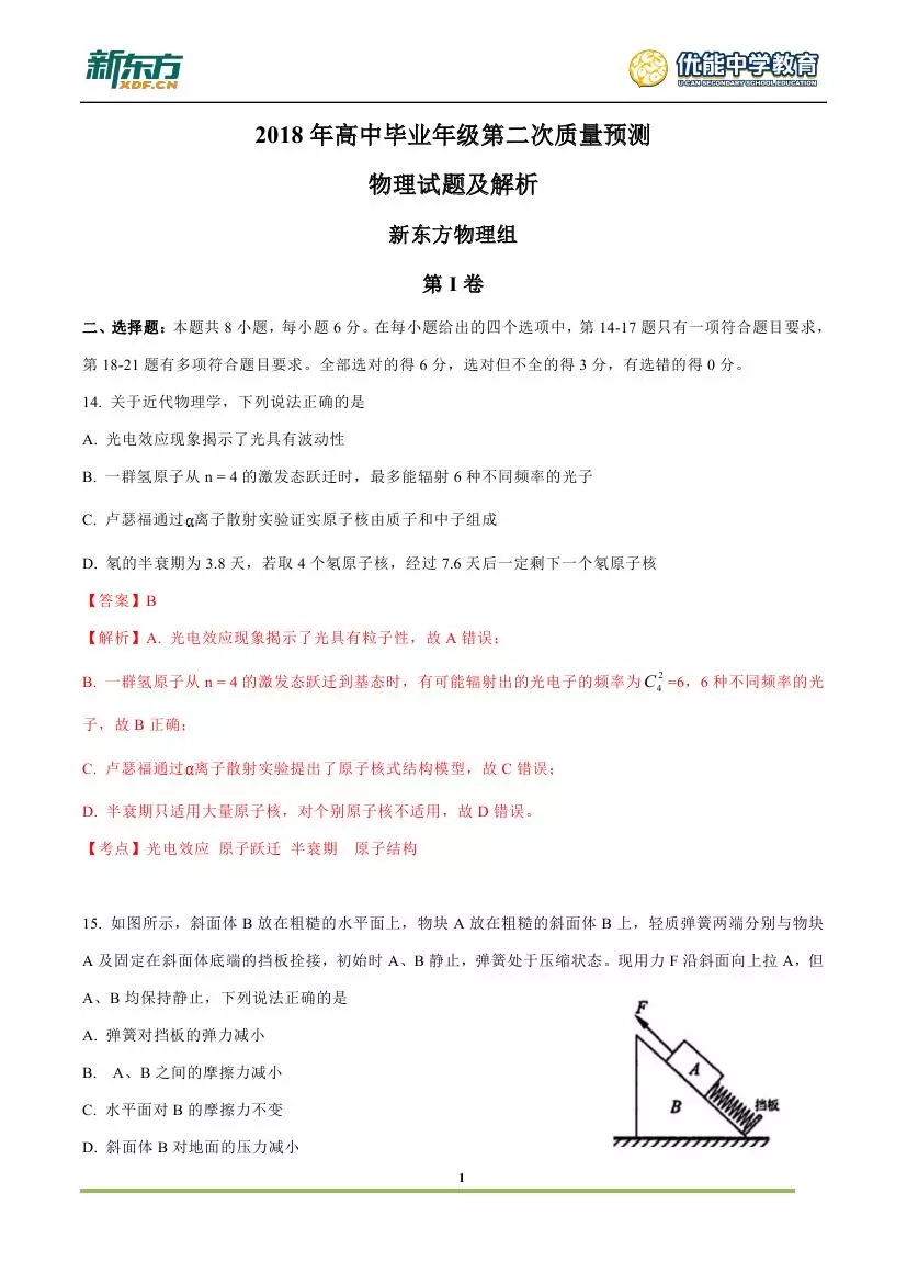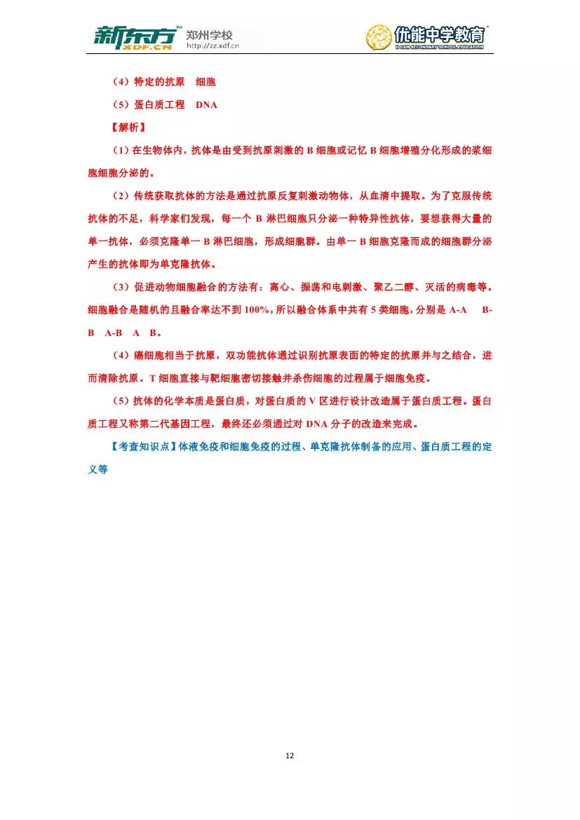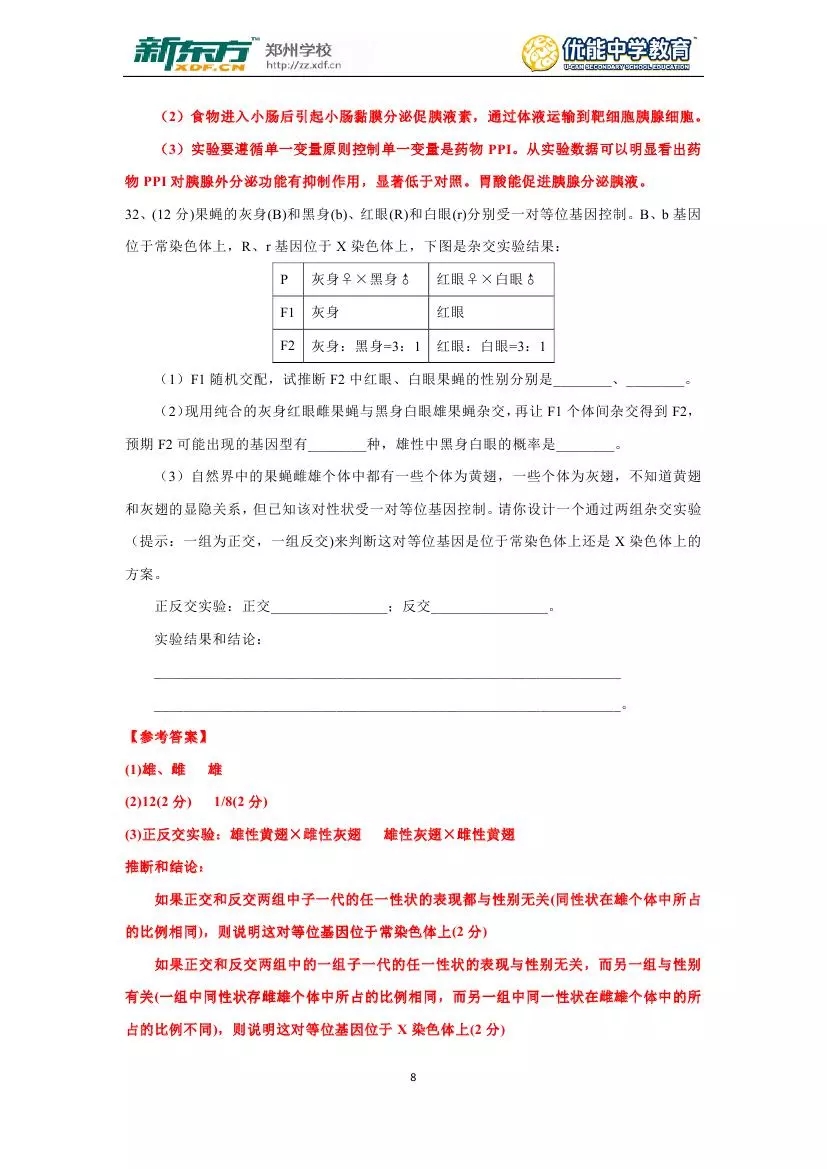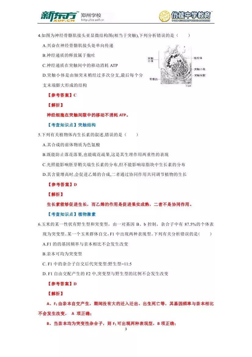 新东方郑州学校首发:2018郑州市高考二模生物试卷解析!